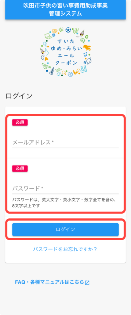 吹田市子供の習い事費用助成事業管理システムにログインする方法